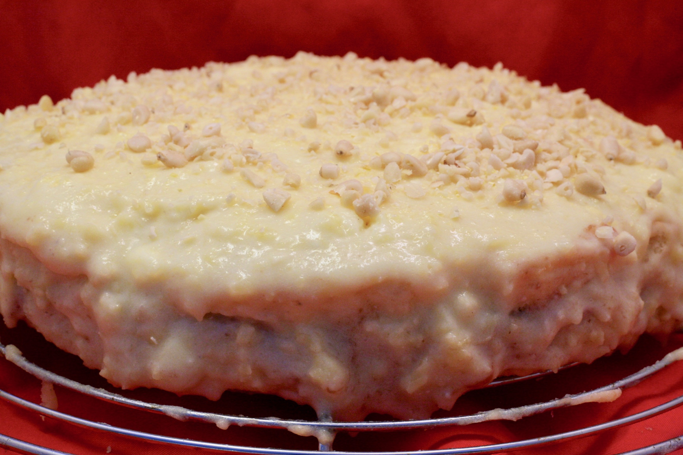 Nun, ich habe die erste Schicht der Buttercreme gut verstreichen können. Da ich jedoch die Buttercreme zuvor in einer Schüssel im Kühlschrank aufbewahrt hatte, war die restliche Buttercreme noch etwas hart, da sie noch keine Zimmertemperatur angenommen hatte. Anstelle einige Zeit zu warten, bis die Buttercreme tatsächlich gut streichfähig sei, entschied ich mich, sie in der Mikrowelle kurz zu erhitzen. Das war ein Fehler. Denn nach dem Erhitzen war die Buttercreme leider flüssig. Und ich bekam sie leider auch nicht mehr leicht fest und gut streichfähig, weder im Kühlschrank noch im Gefrierschrank. Also hatte die zweite Schicht der Buttercreme obenauf leider ein leicht flüssiges Aussehen, wurde im Kühlschrank nicht so kompakt und fest wie die erste Schicht und sah optisch nicht so schön aus. Also, machen Sie diesen Fehler nicht. Buttercreme hat in der Mikrowelle nichts verloren.