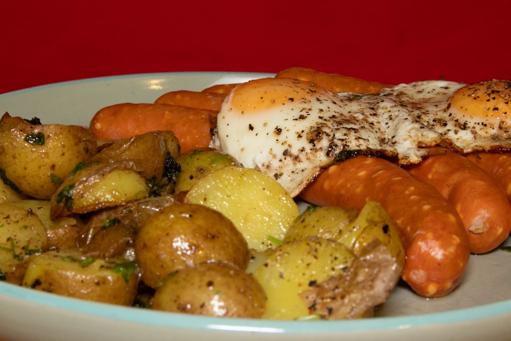 Öl in einer Pfanne erhitzen und Bratwürste auf jeder Seite gute 5 Minuten sehr kross und knusprig braten.
