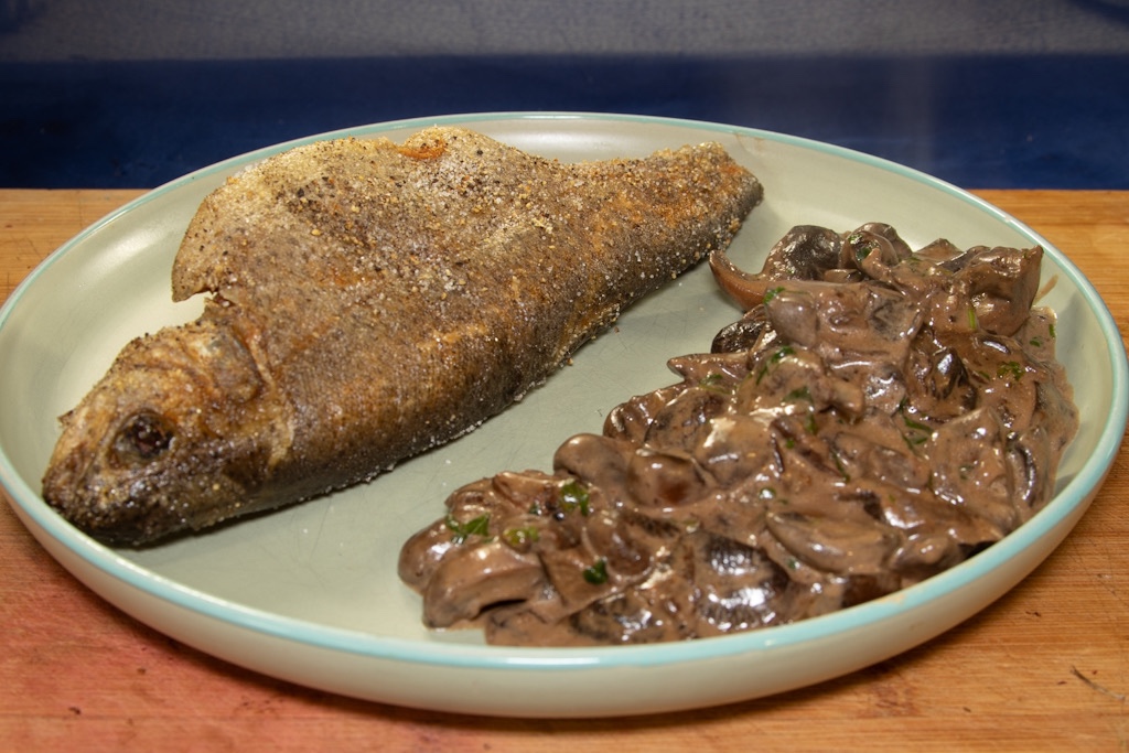 Am Karfreitag ging es traditionell zu. Es gab Fisch in Form von frittierten Forellen. Dazu Pilzgemüse mit Shiitakepilzen und Champignons.